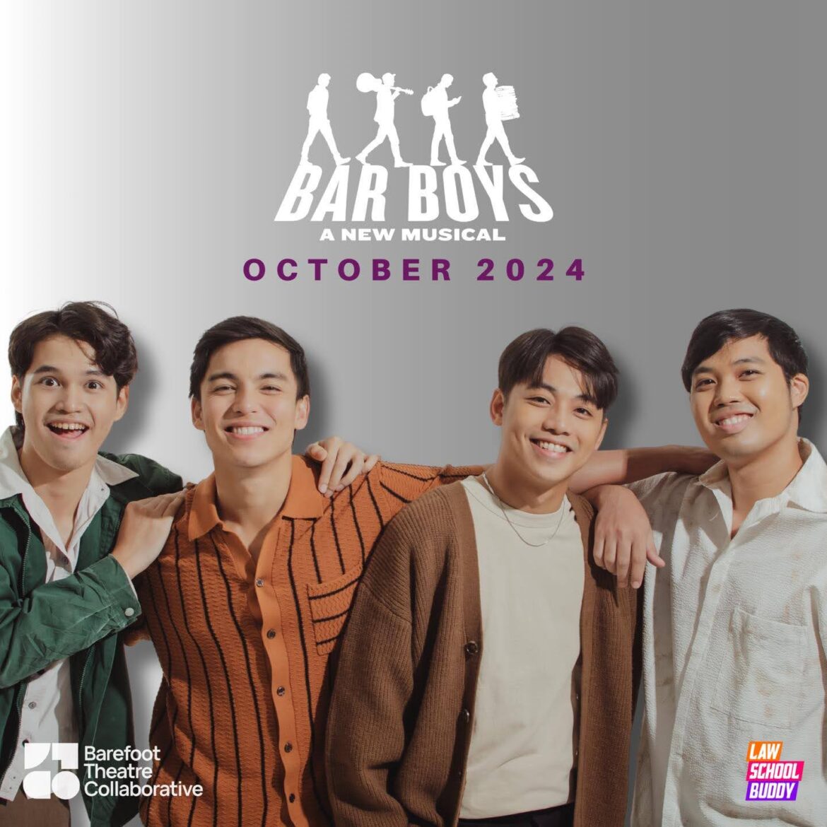 Bar Boys: A New Musical is adapted from the 2017 Cinemalaya film by Kip F. Oebanda, with book and lyrics by Pat Valera, composition by Myke Solomon, and direction by Valera and Mikko Angeles. The musical follows four friends and their journey to become lawyers as they deal with academic pressure, conflicts of love, and challenges in life.
