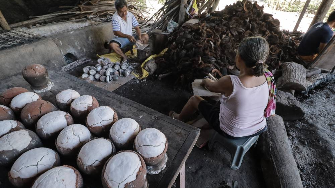 Asin tibuok or “unbroken salt” is an artisanal product from the island province of Bohol. Dating back to the precolonial era, it was used by asinderos (saltmakers) in need of rice to trade with rice farmers in need of salt. The traditional process of making asin tibuok involves months of preparation, starting with submerging coconut husks in seawater to absorb sea minerals, cutting the husks into small pieces and drying them, burning them down to ashes, filtering the salt with seawater, and boiling the brine in special clay pots, until salt forms into a solid and unbroken block dome.