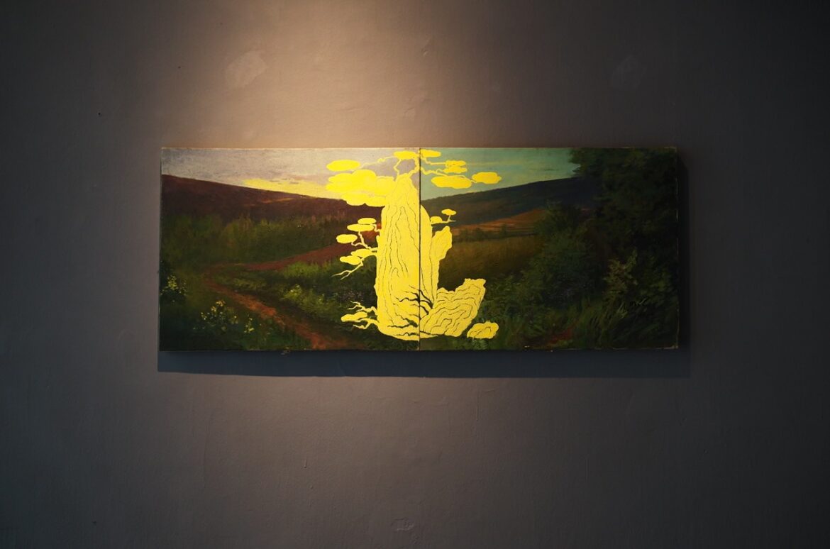 The Sky is The Same Everywhere showcases their collaborated work, with Thao painting the “body” (landscape) and Tham, the “soul” (overlaid art). The combined technique evokes ishizuki, a Japanese style of bonsai art showcasing how nature itself adapts to the many elements in its environment in order to support life.