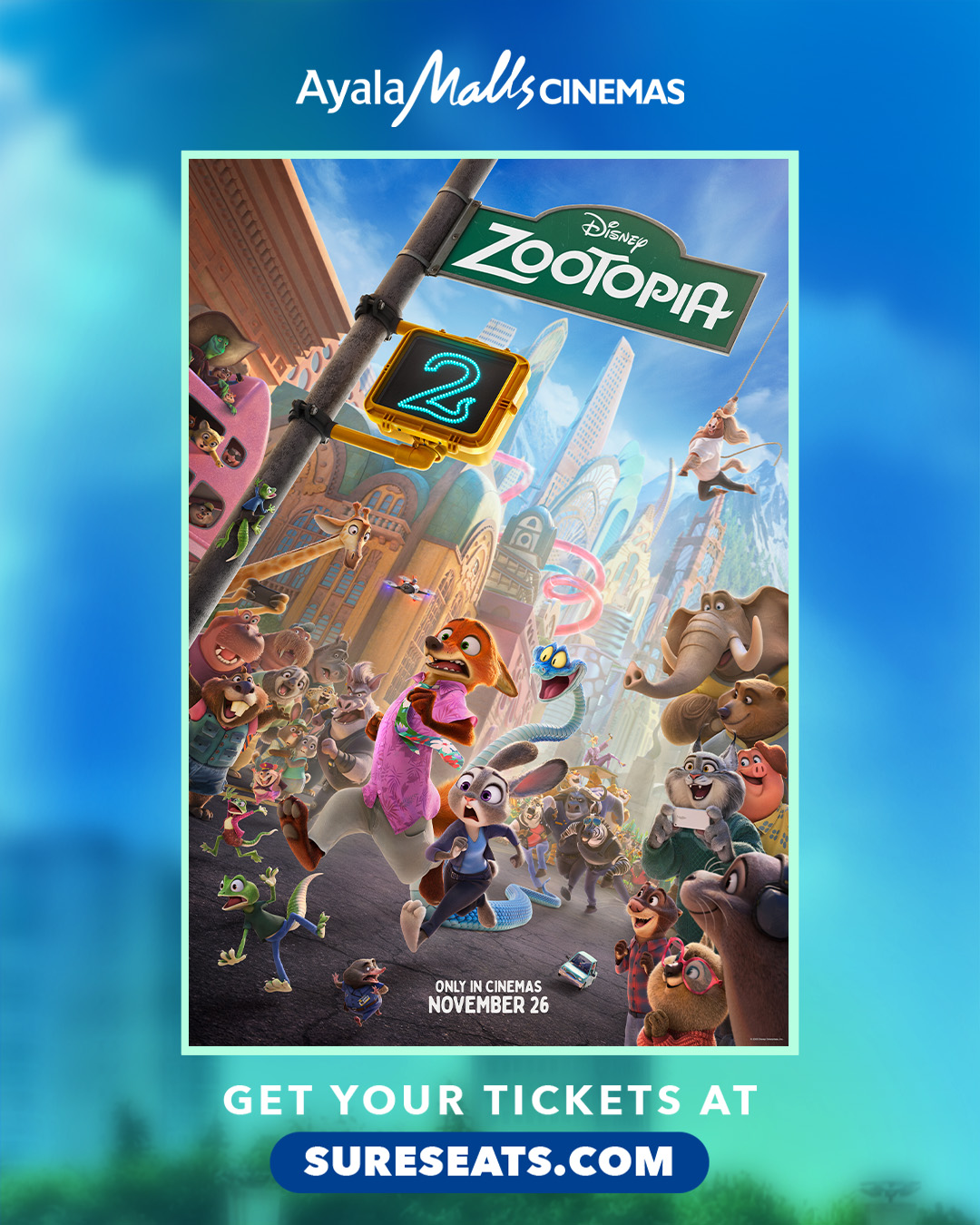 Dive back into the animal kingdom like never before and catch “Zootopia 2,” now showing in Ayala Malls Cinemas. Book your tickets now by visiting www.sureseats.com or any of the participating cinemas. Visit the Ayala Malls Cinemas FB and IG pages for updates!