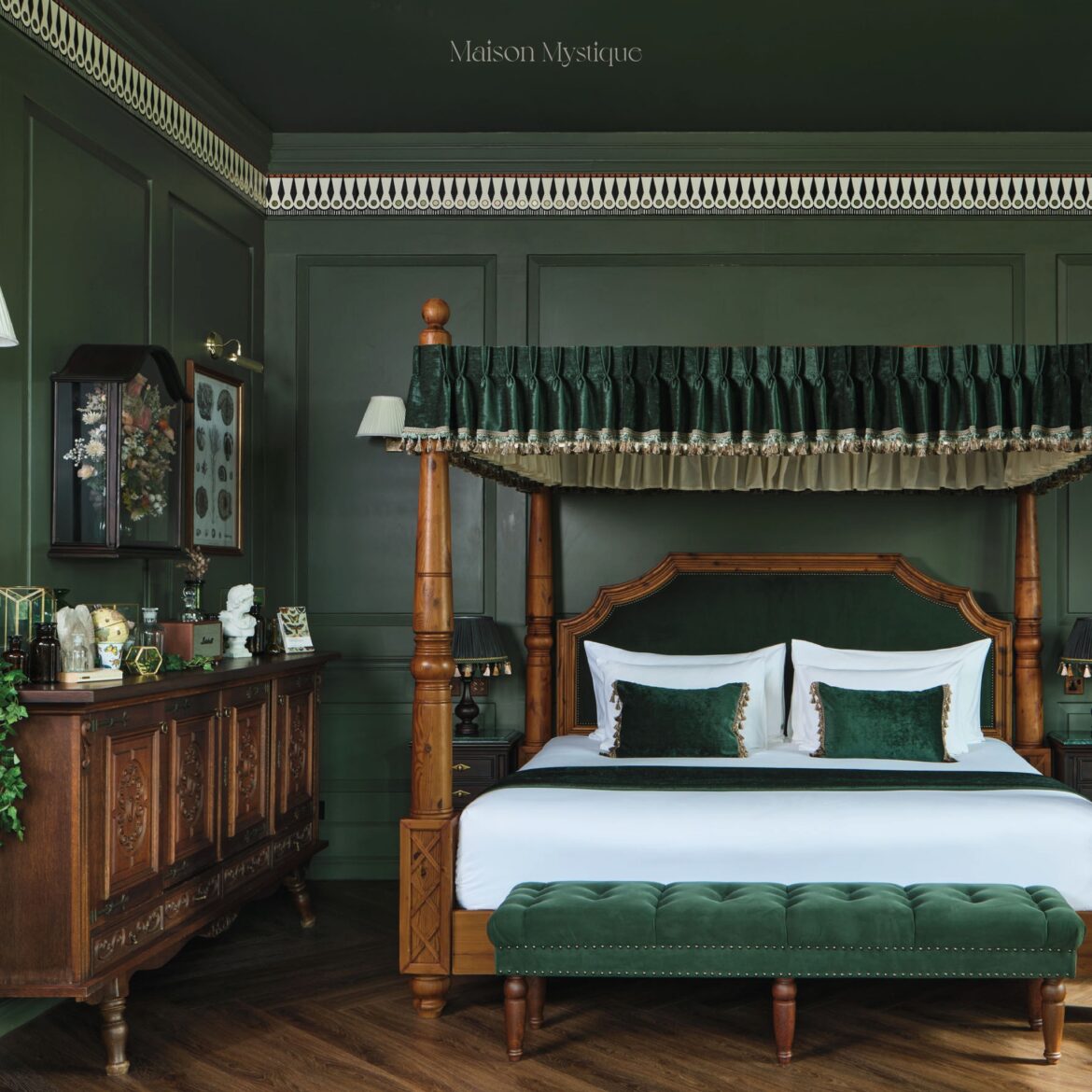 Maison Mystique’s design exhibits harmony of nature and structure, taking inspiration from the lush green landscape and incorporating it in its different rooms, furniture, accents, and more, forming an eclectic mix that evokes mystery and enchantment. This woodland paradise will leave any visitor awestruck with its unique beauty.