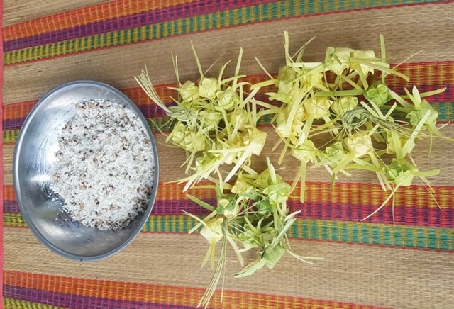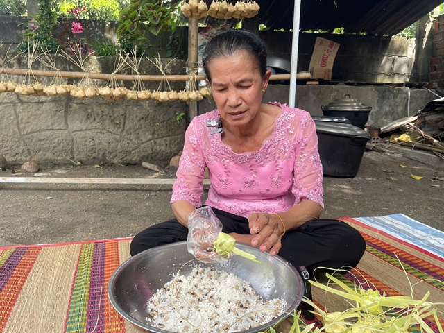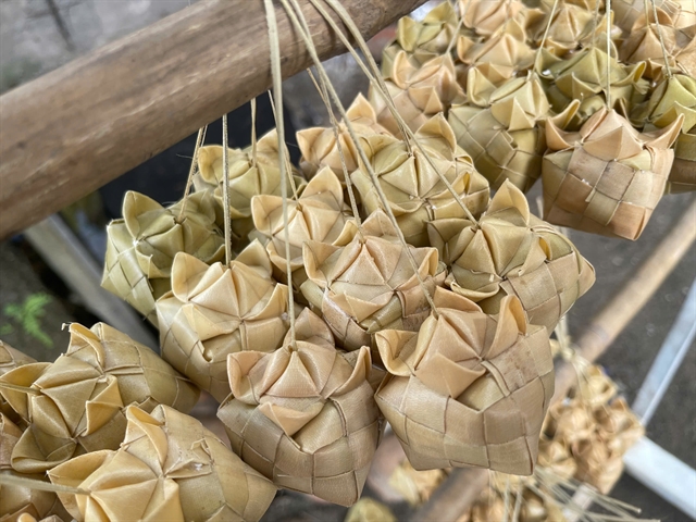 In an interview with Viet Nam News, Néang Sóc Senl, chairwoman of the Women’s Union of O Lam Commune shared, “I have devoted more than forty-four years to making ka tum, and the most difficult stage is weaving the palmyra leaves, because even a small mistake can ruin the shape of the cake or cause the filling to leak.”