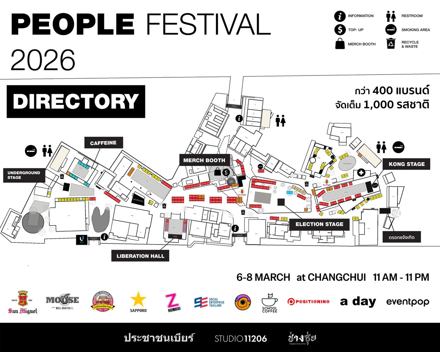 This year, over 1,000 beer flavors from all over the world are expected to turn up at the festival. The organizers released a directory for participants that includes seven spots where people can enjoy a variety of activities: the Caffeine Zone has specialty coffee and matcha to fuel visitors throughout the day; the Underground Stage has live music and unconventional performance art; the Election Stage is where visitors will find brands vying for this year’s People Awards at the festival; the Kong Stage houses authentic Molam, live bands, and “Tipsy Talk” sessions where storytellers meet; the Liberation Hall is a cocktail bar accompanied by the tunes from high energy DJs; the Merch Booth is a spot where visitors can grab exclusive items and limited-edition merch from People Festival 2026; and the Launchpad Alley is where new wave brewers and NGO networks to showcase products made from the heart and exchange ideas for social change.