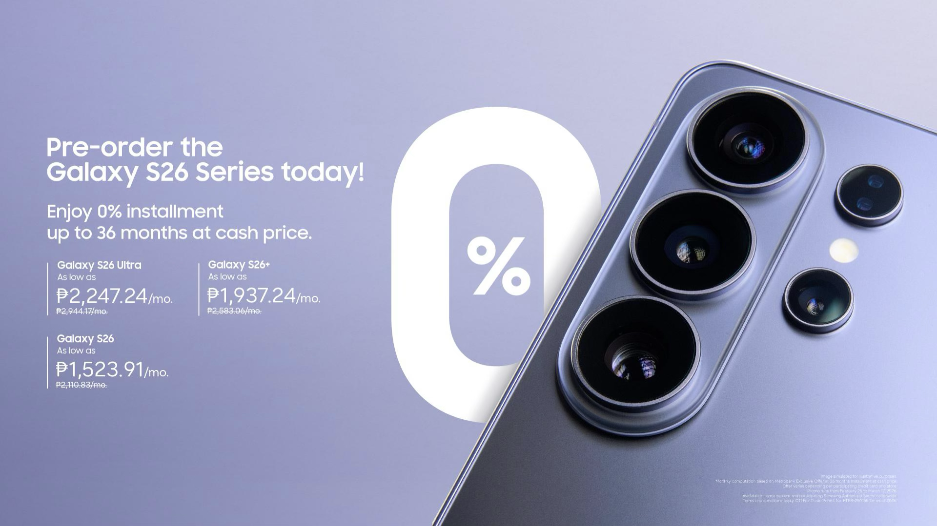 Galaxy S26: https://www.samsung.com/ph/smartphones/galaxy-s26/buy/?modelCode=SM-S942BZDQPHL